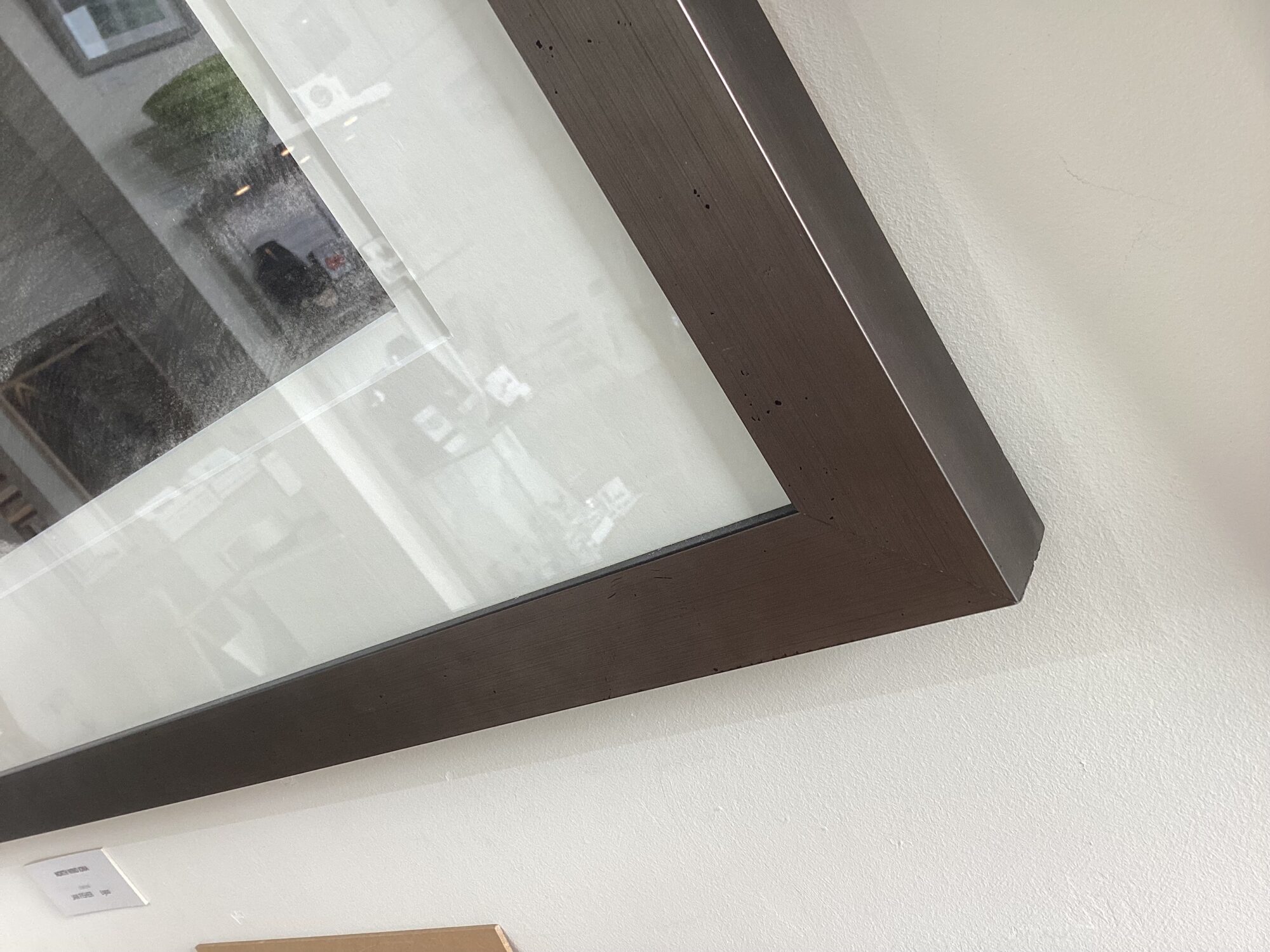 Available with mottled charcoal frame moulding, 30mm wide, double mount, glazed.
