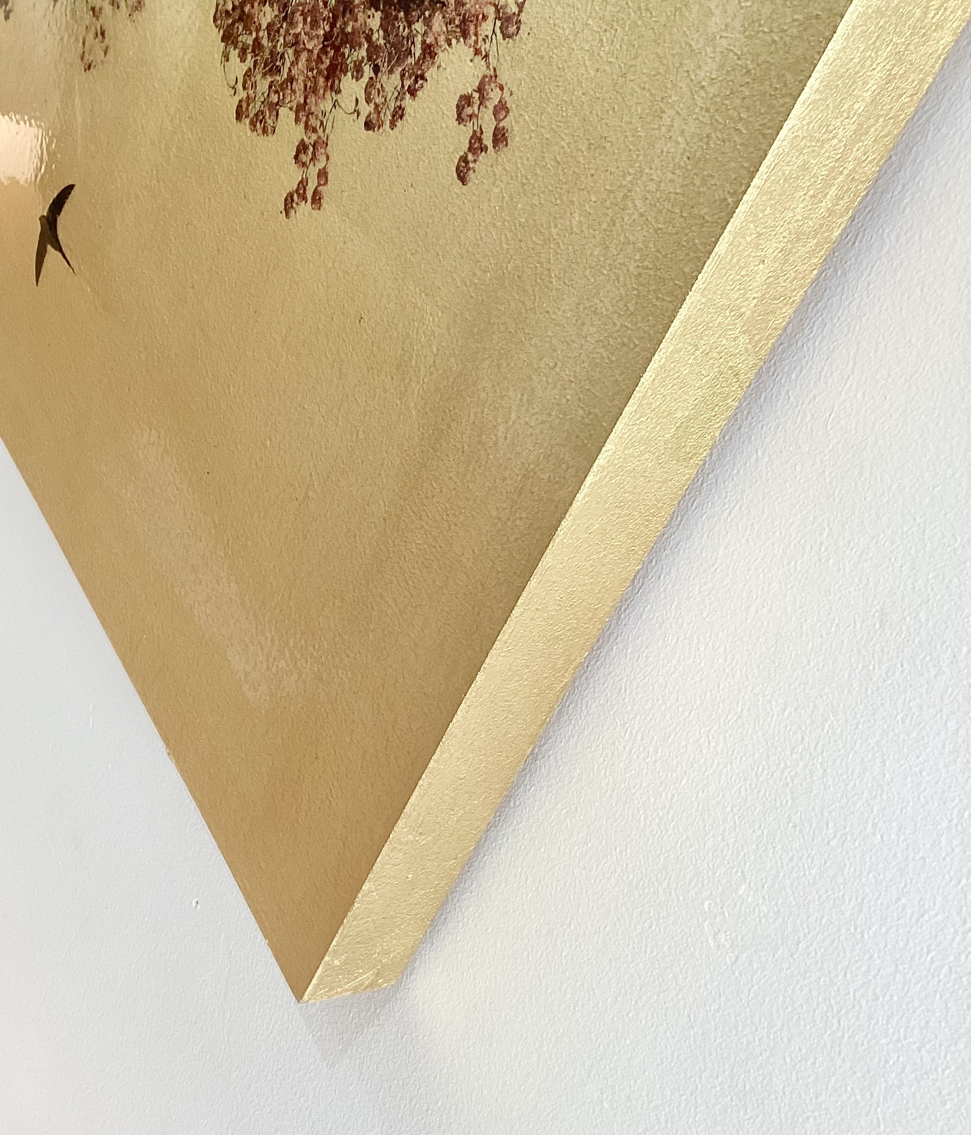 These unique artworks are perfect in any setting being luxurious and beautifully decorative. They’re made by using acrylic paint & organic photographic pigment layered onto gilded wooden backgrounds coated with shellac and art glazes.