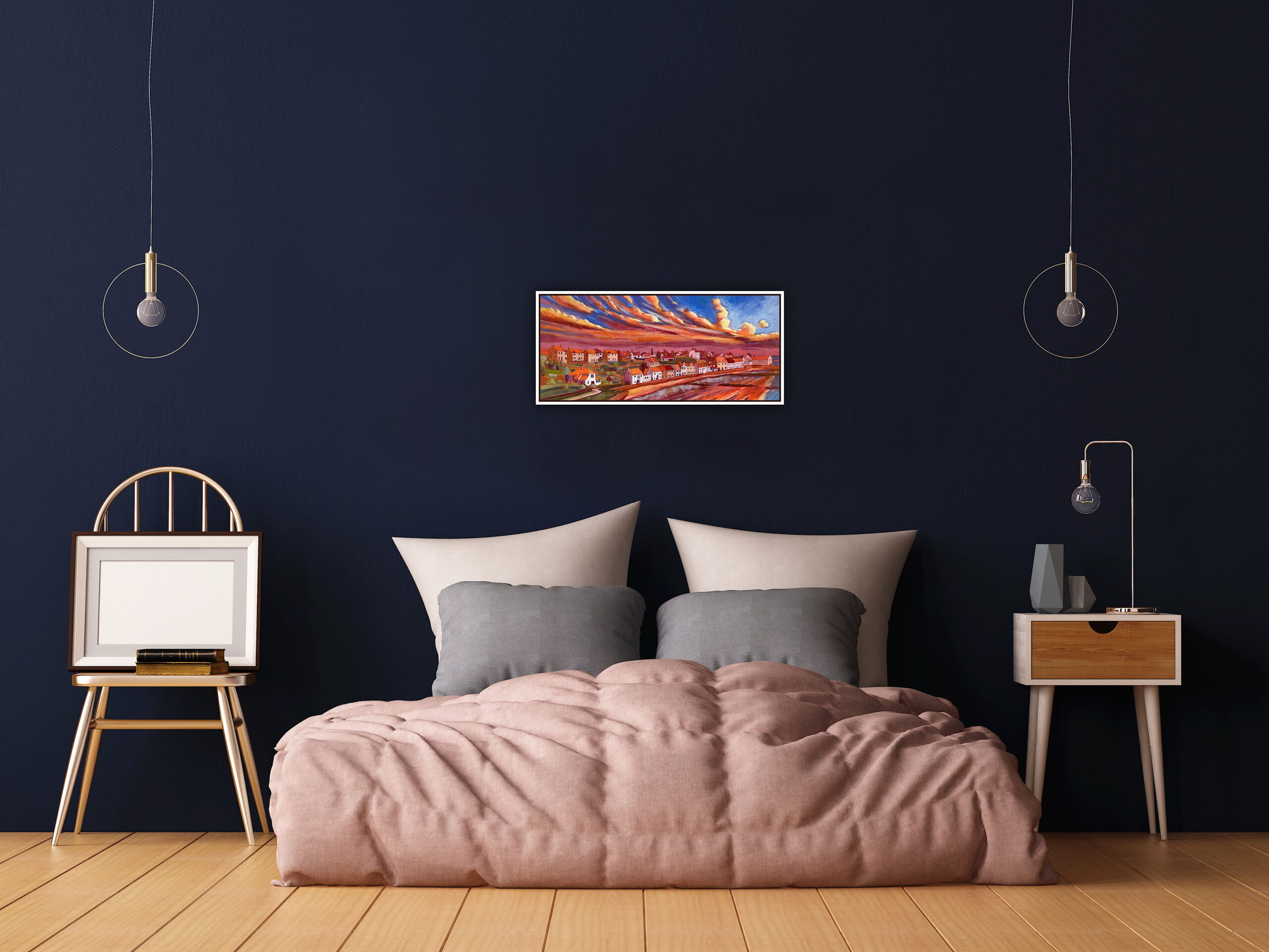 Christine Weekes’s painting captures West Shore, Pittenweem at the precise moment when night relinquishes the sky.